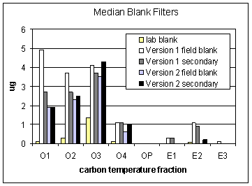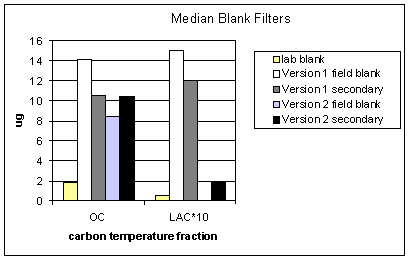 Figure 2. Median quartz blank filters for total OC and LAC (EC).
