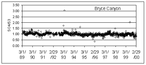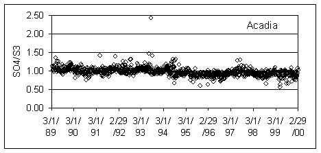 Figure 1. SO4/S3 ratios at Acadia and Bryce Canyon National Parks.