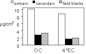 Figure 4. Median concentrations of primary, secondary, and field blank filters. From all samples collected in 1996.