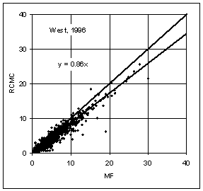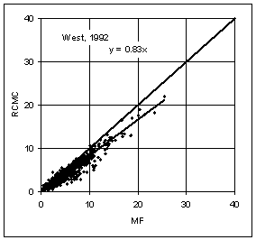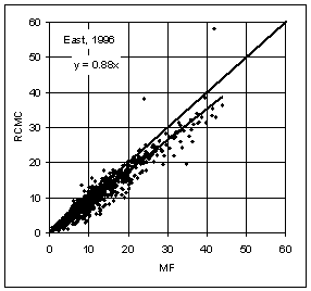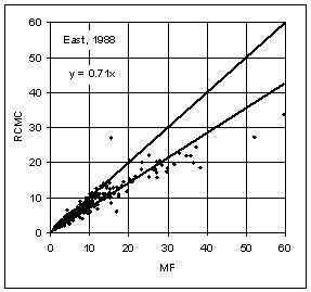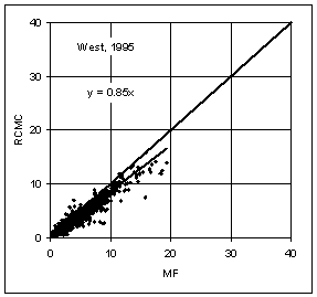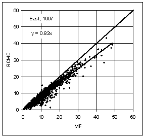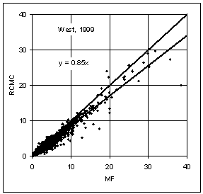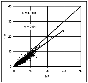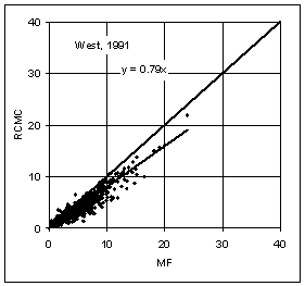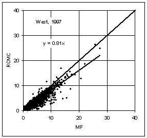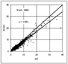 Table 1 and Figures 3 and 4 show annual comparisons for Western sites
