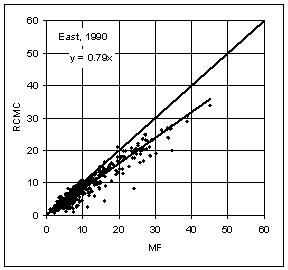 was actually lower than that at the later years. The dip in the ratio at Western sites in 1990 was not observed at